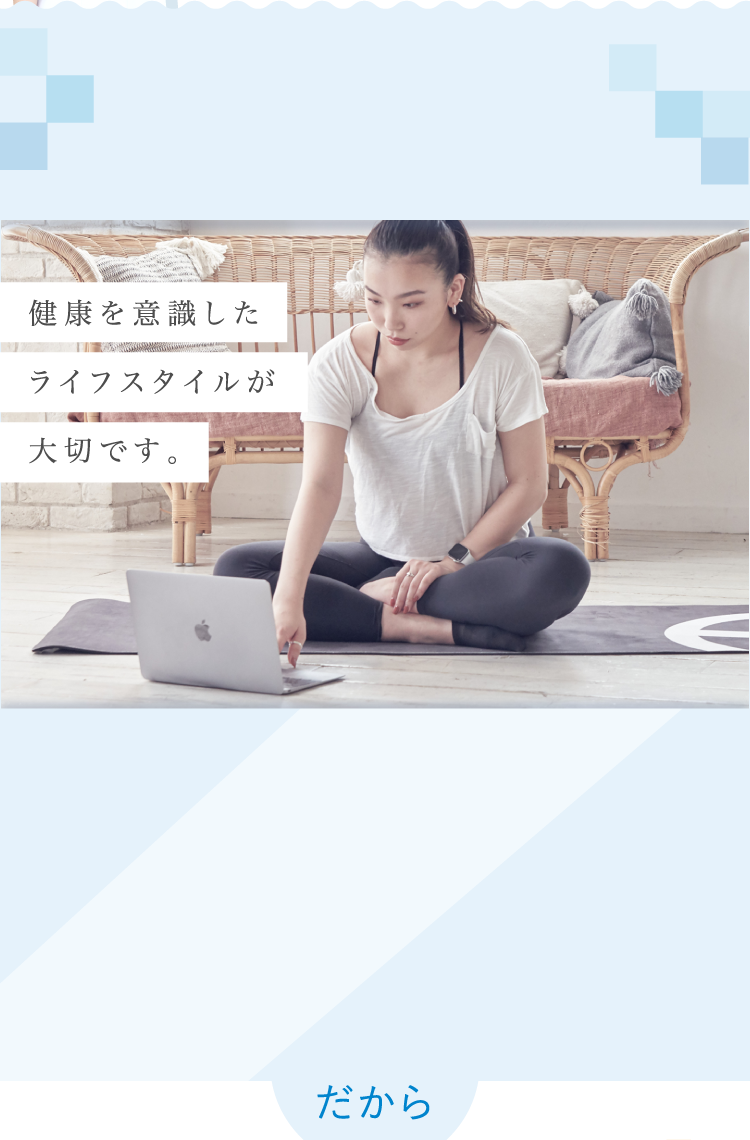 健康のためにしていること、ありますか?うがい、⼿洗い、アルコール消毒……ウイルスから⾝を守る⽅法はたくさんあるけれど、カラダを動かすことで内側から健康でいるのも⼤切なこと。しかし、お家で過ごす時間が増えた今、運動不⾜になりがちに。すると⾒た⽬の問題だけでなく、全⾝の巡りが滞って疲れやすくなったり、不眠になりやすかったり、気分が落ち込むなど、ココロとカラダの健康にも影響が……!